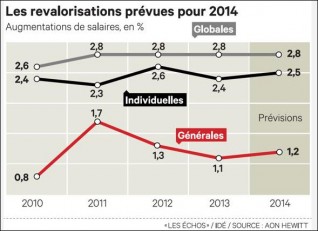 frein sur la hausse des salaires qui, en 2012, frisait les 2%. Pensez !