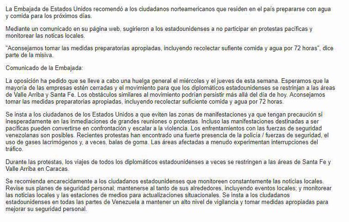 En otro mensaje, Moncada indicó que la embajada estadounidense ha participado en la organización de las manifestaciones violentas de la oposición.