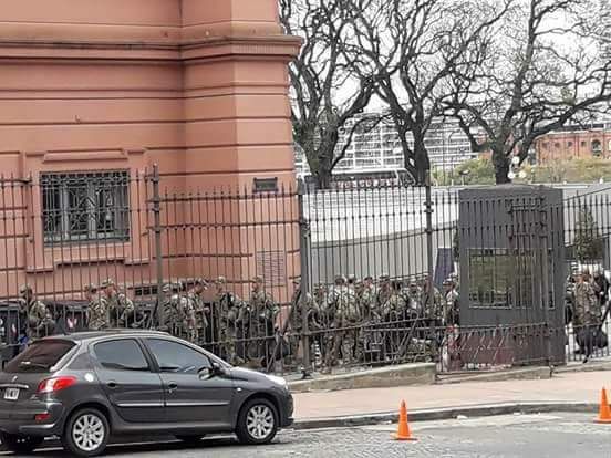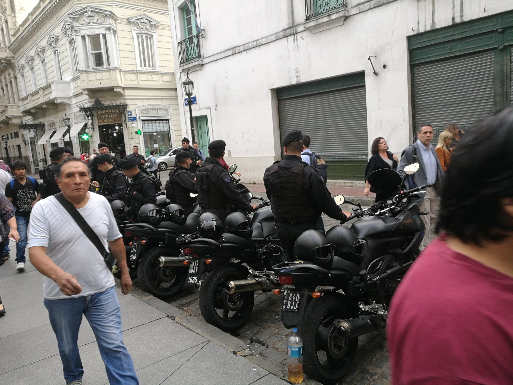 A pesar de que solo se movilizaron pequeños grupos de izquierda, cientos de policías, agentes de infantería, camiones hidrantes, camionetas, autos y motos se encuentran apostados en los alrededores de la Casa Rosada, que está completamente vallada. Ayer se conoció que tras el hallazgo de un cuerpo en el río Chubut, el Gobierno dispuso la suspensión de los francos para todos los uniformados.