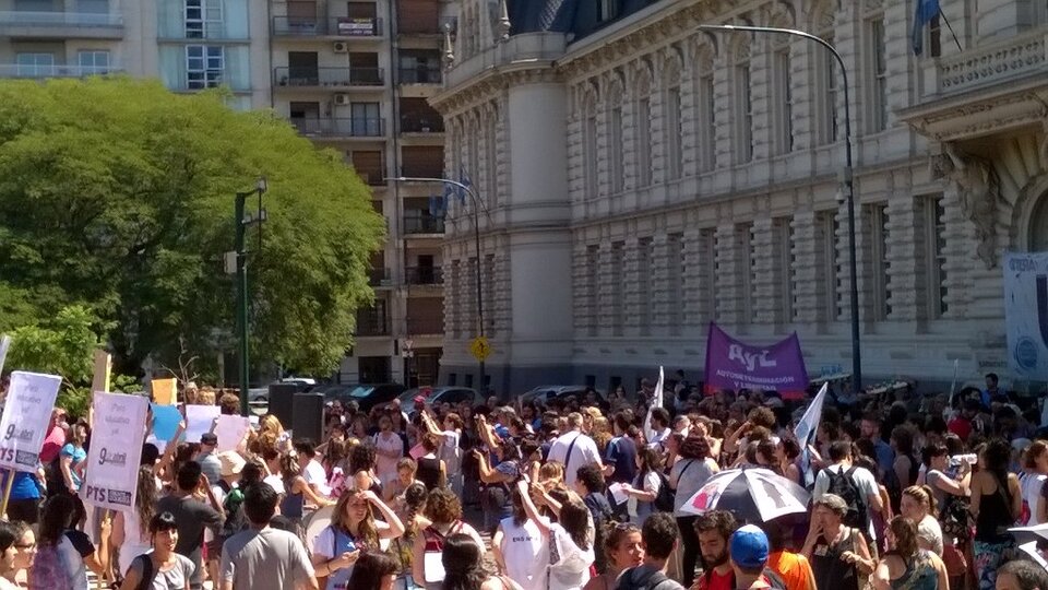 Bajo la consigna “el 29 por los 29” y “No al cierre de los IFD”, la concentración fue convocada por todos los claustros de los terciarios, normales, artísticas y superiores y los gremios docentes, en Pizzurno 935. “Nunca en la historia argentina la apertura de una universidad implicó el cierre de un instituto. Lo hacen para reducir presupuesto; porque no toleran que se elijan las autoridades democráticamente por claustros y porque creen que el conocimiento es una mercancía y no un derecho social”, remarcó Eduardo López, dirigente de la Unión de Trabajadores del Estado (UTE).