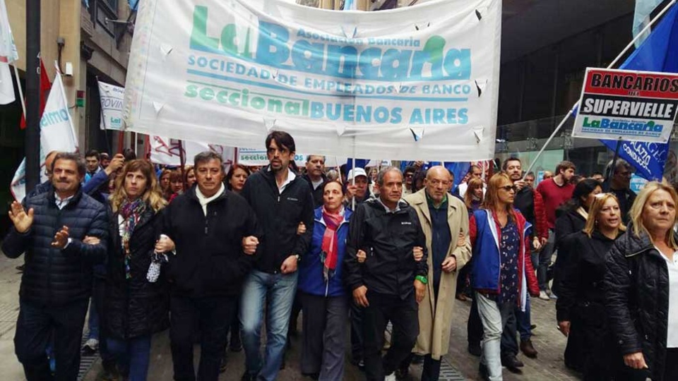 La dirigencia de la Asociación Bancaria anunció un paro por 48 hs a partir del próximo jueves y otro de dos días para el 8 y 9 de febrero en reclamo por la modificación del régimen jubilatorio de los trabajadores del Banco Provincia. Destacaron que la medida estará acompañada con el quite de colaboración permanente “hasta que el Gobierno cambie su actitud“, en medio de la negociación paritaria en el sector que el Gobierno fijó en un 9 por ciento. “La Gobernadora María Eugenia Vidal, junto a los legisladores del oficialismo y un puñado de legisladores de la oposición que fueron funcionales a ella y a su proyecto político, arremetieron y cercenaron derechos de los trabajadores, jubilados y pensionados del Banco Provincia”, denunció el gremio en el comunicado con el que dieron a conocer las próximas medidas de fuerza.