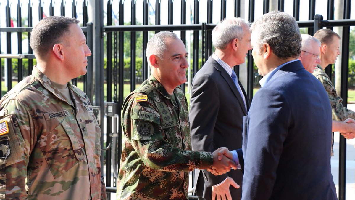 El Presidente electo de Colombia Ivan Duque visitó la sede del Comando Sur de los Estados Unidos (SOUTHCOM) hoy, donde se reunió con el Almirante Kurt Tidd, comandante de SOUTHCOM y con otros líderes del comando militar para conocer más sobre la institución y sus lazos de defensa con Colombia. Duque visitó la sede como parte de su preparación para asumir la presidencia de Colombia el próximo 7 de agosto.