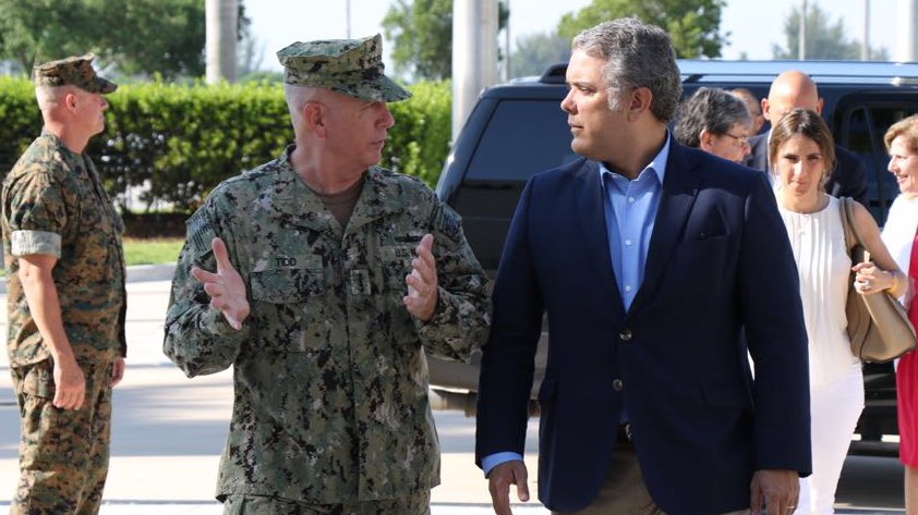 En una clara señal de “fraternidad” con el imperio al que tanto admira, el uribista presidente electo de Colombia Ivan Duque visitó el sábado la sede del Comando Sur. Allí se reunió con el almirante Kurt Tidd para dialogar a puerta cerrada sobre el fortalecimiento entre los dos países en materia de seguridad y presentar las propuestas que pretende implementar los próximos cuatro años en su gobierno.